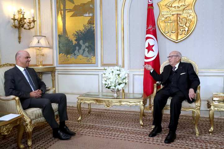 السبسي يستقبل وزير الداخلية والرئيس السابق للكنفدرالية السويسرية