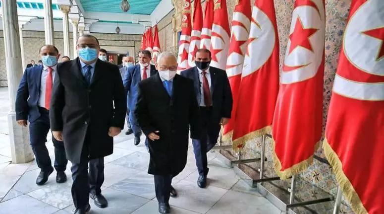 افريقيا برستونس. التقى رئيس الحكومة هشام مشيشي صباح اليوم اليوم الخميس 18 مارس 2021 برئيس مجلس نواب الشعب راشد الخريجي الغنوشي بمقر المجلس، للتباحث في الوضع العام بالبلاد وسبل تكثيف التعاون بين الحكومة والسلطة التشريعية، قبل ان يتحول رفقة رئيس المجلس إلى متحف باردو للاشراف على احياء الذكرى السادسة لعمليّة باردو الإرهابية، التي راح ضحيتها الشهيد الملازم الأول محمد أمين مرجان وعدد من السياح الأجانب من جنسيات مختلفة، وذلك بحضور وزير السياحة الحبيب عمار وعدد من سفراء البلدان الأجنبية.