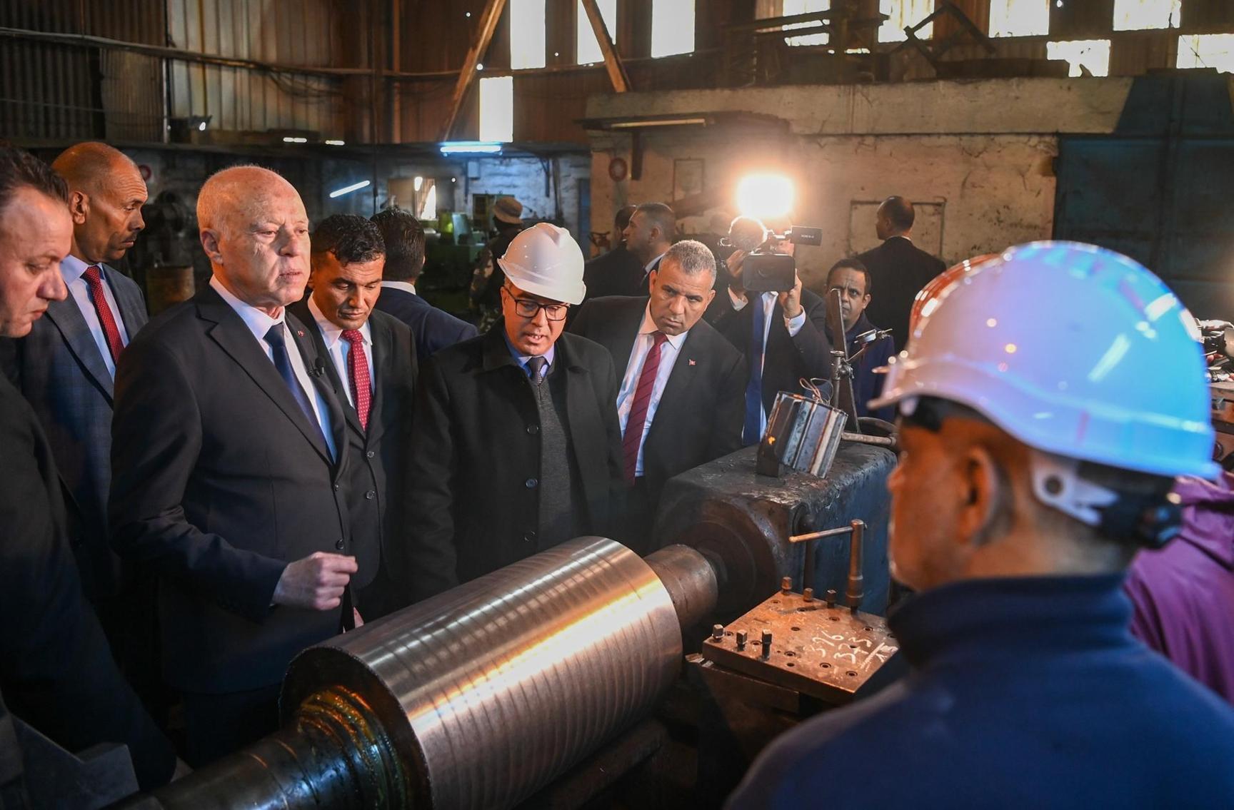 واستعرض رئيس الجمهورية على مسؤولي المصنع الذين اجتمع معهم ملامح عن تاريخ مصنع الفولاذ الذي كان يصدر الحديد لأوروبا والولايات المتحدة الامريكية، كما كان يصدر الأوكسيجين المصنع ويدر أرباحا كبيرة على تونس خلال بناء الدولة الوطنية.
