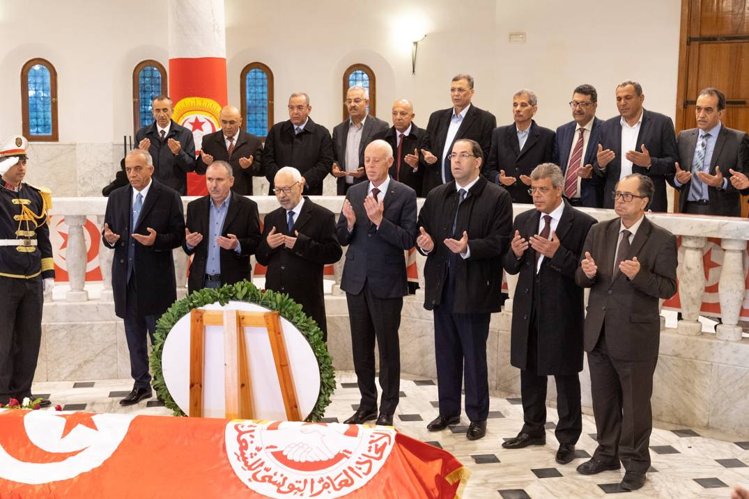 وتلا الحاضرون فاتحة الكتاب ترحما على روح الزعيم النقابي الراحل، قبل أن يتولى رئيس الدولة وضع إكليل من الزهور على ضريح الشهيد.