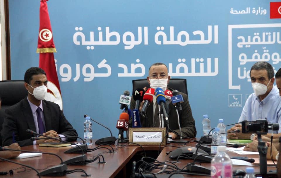 أفريقيا برس – تونس. انعقدت بمقرّ وزارة الصحة ظهر اليوم الاثنين 9 أوت 2021 ندوة صحفيّة أشرف عليها الدّكتور علي مرابط المكلّف بتسيير وزارة الصحّة وبحضور عدد من ممثّلي مؤسّسات الدولة والمنظمات الوطنيّة والمهنيّة ومكوّنات المجتمع المدني والمتطوّعين المشاركين في اليوم الأوّل من حملة التّلقيح المكثّف ضدّ فيروس كورونا.