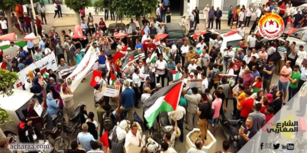 وحثّت كل القوى الوطنية من أحزاب ومنظّمات وجمعيات شخصيات وطنية وفنية ورياضية مناهضة للتطبيع على” المشاركة في المسيرة الوطنية التي دعا إليها الاتحاد العام التونسي للشغل يوم الأربعاء القادم تحت عنوان دعما للمقاومة ومن أجل تجريم كل أشكال التطبيع والتي ستنتظم بشارع محمد الخامس والمساهمة الفاعلة كل حسب مجاله في التنديد بالعربدة الصهيونية”.