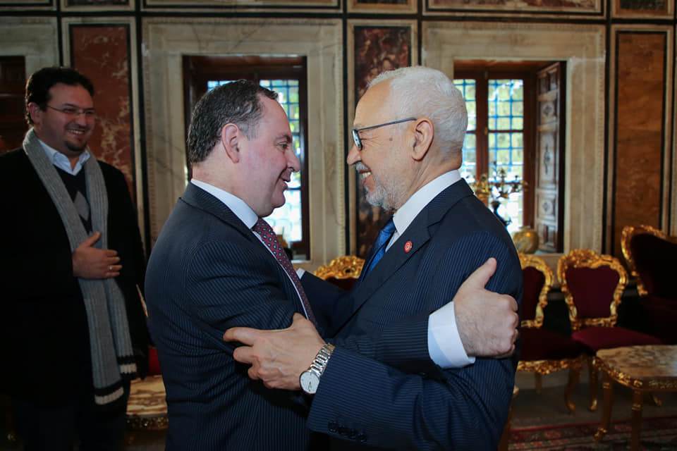 استقبل راشد الغنوشي رئيس مجلس نواب الشعب صباح اليوم الثلاثاء 04 فيفري 2020 بقصر باردو كلوديو رزنسوايغ Claudio Rozencwaig لخارجية بحضور سماح دمق رئيسة لجنة الحقوق و الحريات و العلاقات الخارجية.