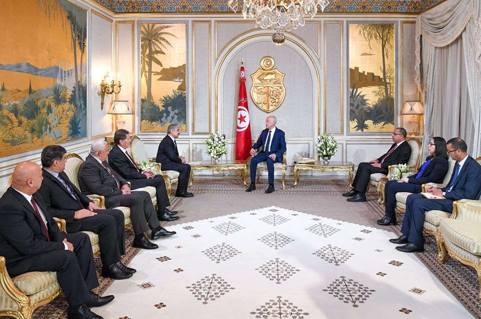 وذكّر رئيس الدولة بالمواقف المبدئية الثابتة الداعمة والمساندة للقضية الفلسطينية وللحقوق المشروعة للشعب الفلسطيني في إقامة دولته المستقلة وعاصمتها القدس الشريف. وشدّد على أنّ تونس تقبل ما يقبل به الجانب الفلسطيني وترفض ما يرفضه.