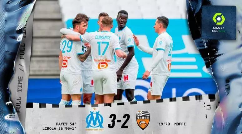 وعرفت الدقيقة 70 نجاح لوريان في تعديل النتيجة عن طريق هدف آخر للنيجيري تيريم، غير أن المدافع ليرولا عاد هو الآخر ليُسجل هدفا منح به مارسيليا الانتصار في الدقيقة الأولى من الوقت البديل.