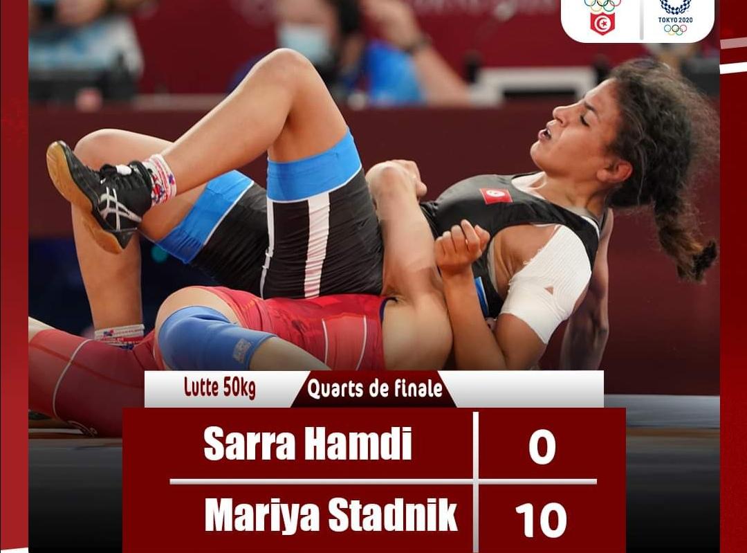أفريقيا برس – تونس. انهت المصارعة التونسية سارة الحامدي منافسات وزن 50 كلغ في المركز العاشر من مجموع 16 مصارعة ضمن العاب طوكيو (2020 ز1).
