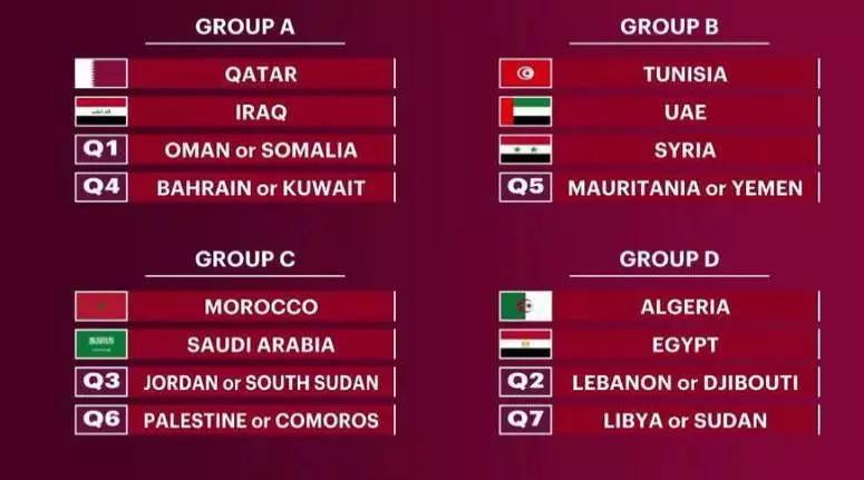وفي ما يلي توزيع المجموعات في كاس العرب التي ستقام في قطر من 1 الى 18 ديسمير المقبل