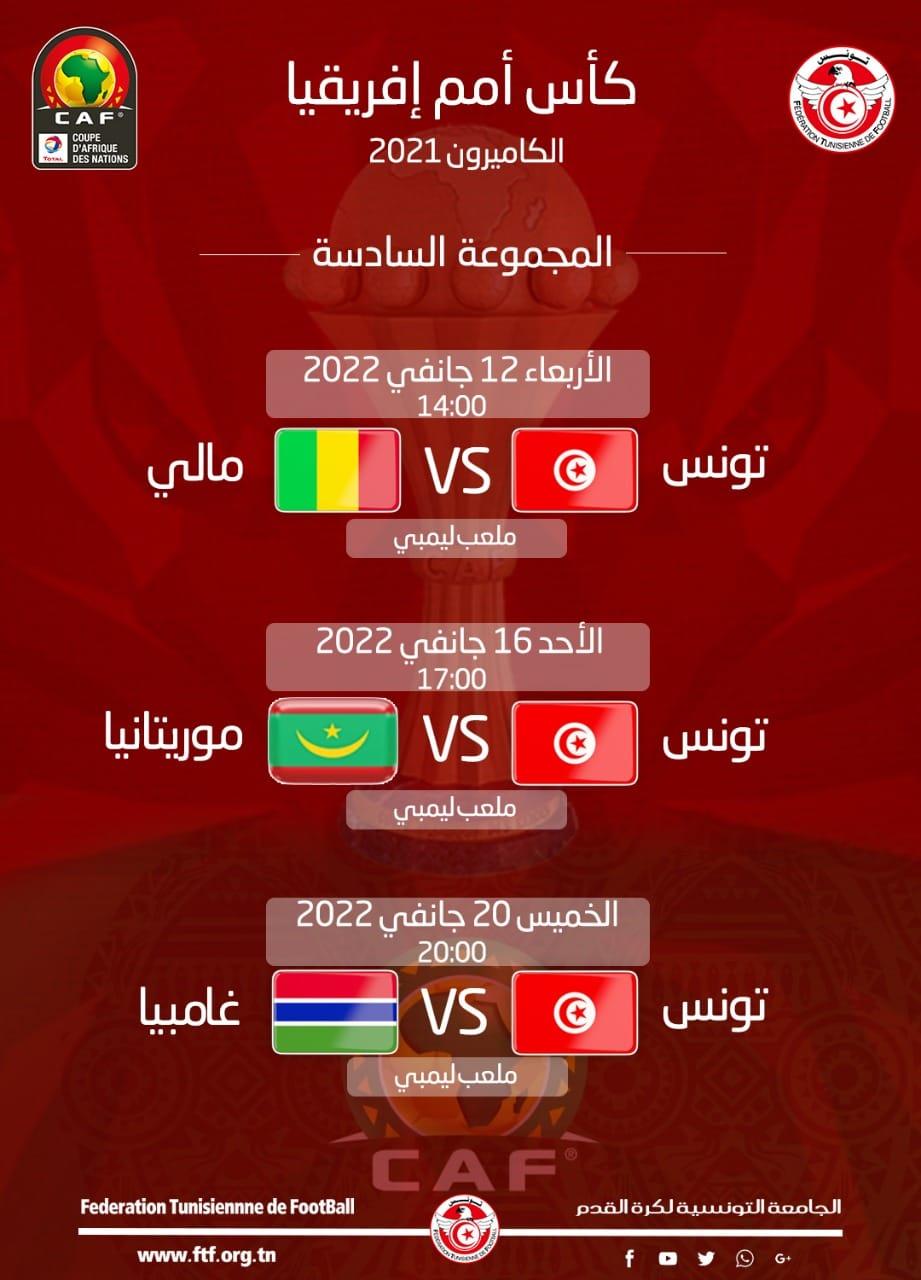 كان الكاميرون 2021 - برنامج مقابلات المنتخب التونسي في الدور الاول