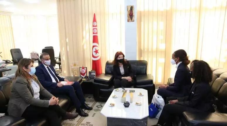 وتناولت الجلسة عرض أهم مشاريع الجامعة التونسية لكرة القدم لدعم البنية الأساسية الرياضية وتطوير كرة القدم النسائية، وكشفت سهام العيادي بالمناسبة عن دعم الوزارة لمشاريع إحداث ملاعب أحياء تجسيدا لمقاربة التنمية الاجتماعية حيث رحّبت مبعوثتا الاتحاد الدولي لكرة القدم بالمقاربة التونسية كما كشفتا عن إمكانية دعم الفيفا للمشروع، واكدتا أيضا عن دعم تواجد المرأة التونسية في مواقع القرار صلب الهيكل الدولي.