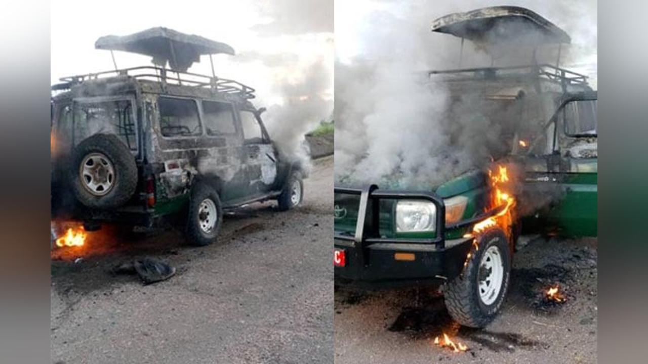 According to police, the victims’ tour vehicle was burnt to ashes by the assailants.