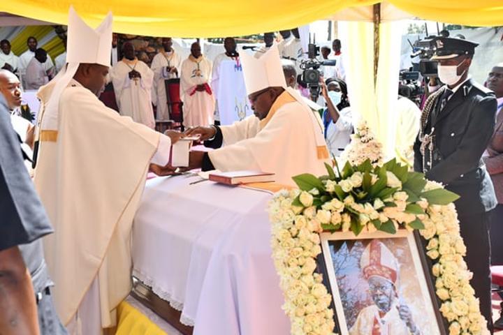 Africa-Press – Uganda. Hundreds of mourners on Sunday thronged Nyamitanga hill to witness the sendoff of Mbarara’s longest serving Archbishop Paul Kamuza Bakyenga.