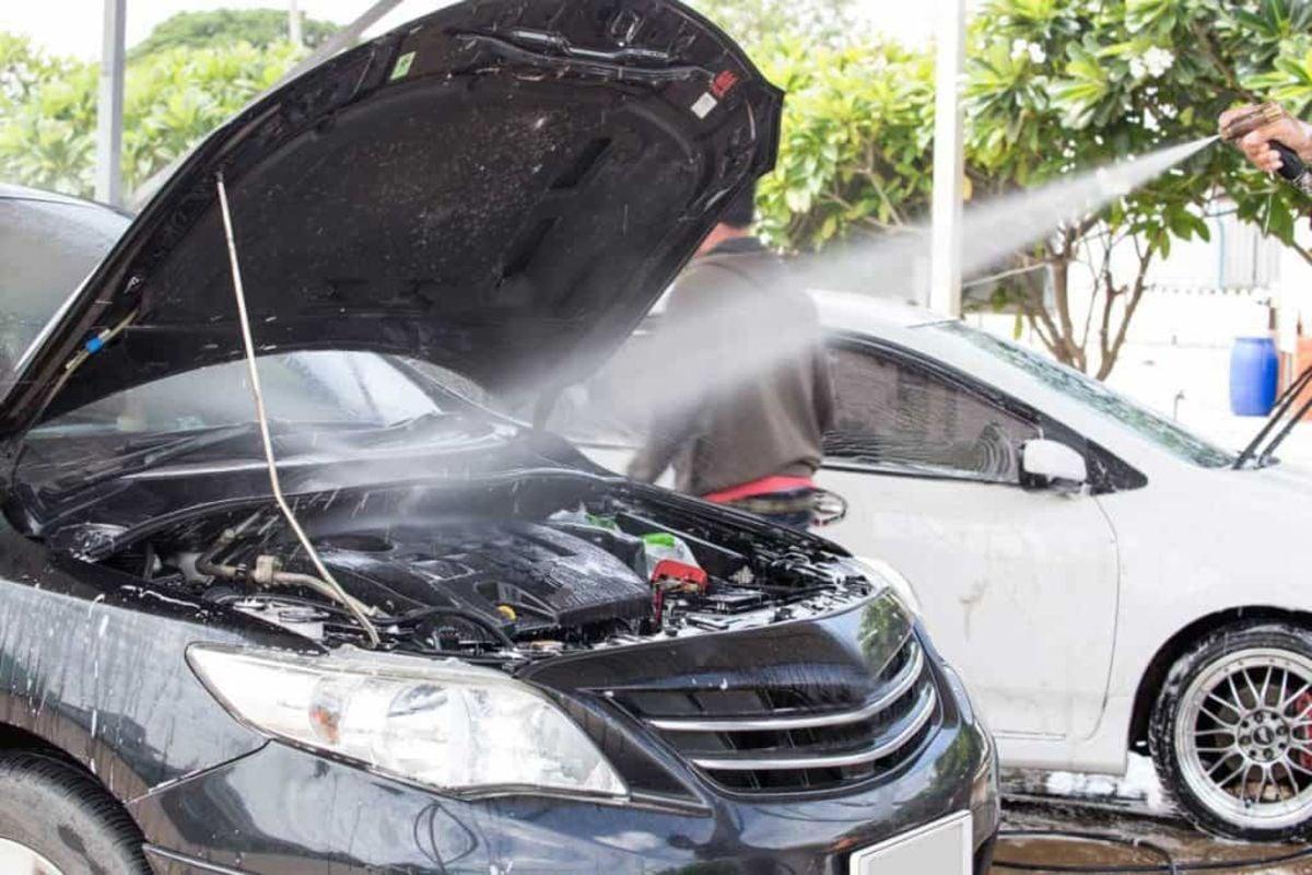In this learning curve, it can be helpful to have the engine warm before you start (for your own sake not too hot) and to start the engine as soon as you have finished to accelerate drying even in hidden away crevices and near electrical connections, and demolish potential drips.