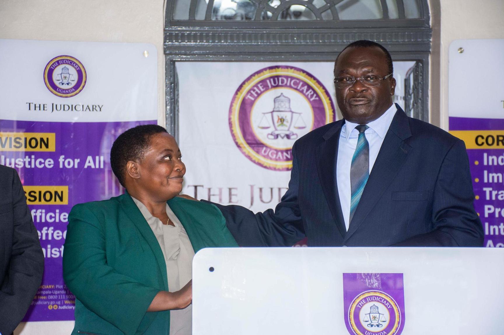 Hugs and shaking of hands filled the High Court on Wednesday when Prime Minister Robinah Nabbanja paid a courtesy call onto Chief Justice Alfonse Owiny-Dollo at his official chambers in Kampala.