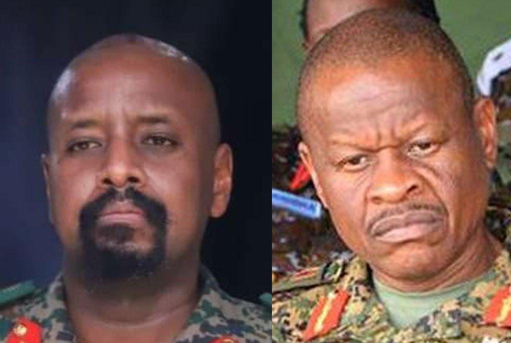 UPDF Commander of Land Forces Lt Gen Muhoozi Kainerugaba and the Chief of Defence Forces, Gen Wilson Mbadi. PHOTO/COMBO