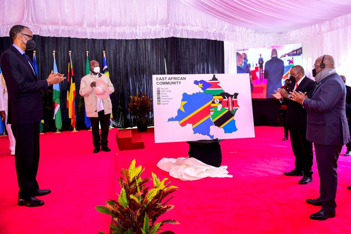Presidents Yoweri Museveni of Uganda and Paul Kagame of Rwanda attended the brief but elaborate ceremony.