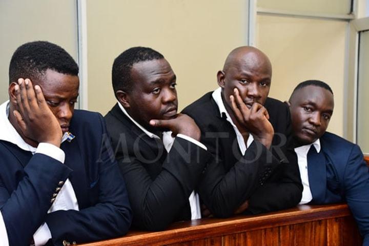 The four suspects are Mr Hamza Kasozi,30, of Nansana Municipal Council, Mr Charles Lwanga Luba,36, of Makindye, Mr Justus Akampurira,30, of Kawempe Division Council and 33-year-old software engineer Mr Nasif Najja.