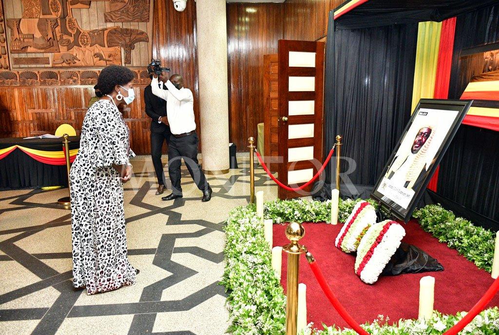 At 12:15pm yesterday with a fair number of security personnel, the first deputy prime minister and minister for East African Affairs, touched base at Parliament to pay tribute to the late Oulanyah.
