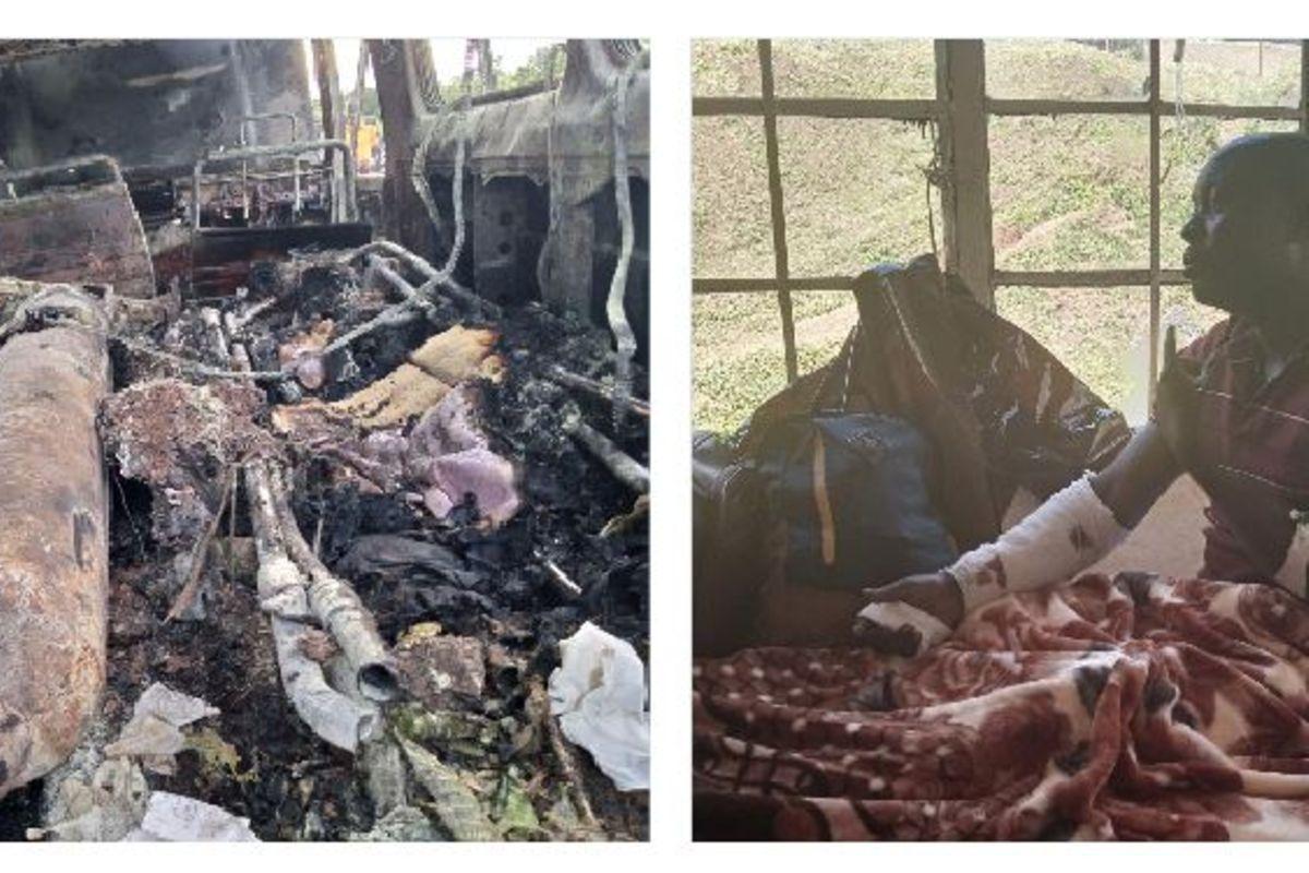 “While driving, I saw smoke coming out of the vehicle and I decided to park to find out what had happened. When I checked, I saw the nurse and attendant trying to fix the oxygen cylinder cap that had leaked,” Mr Jeanmarie Bayoli Masereka said.