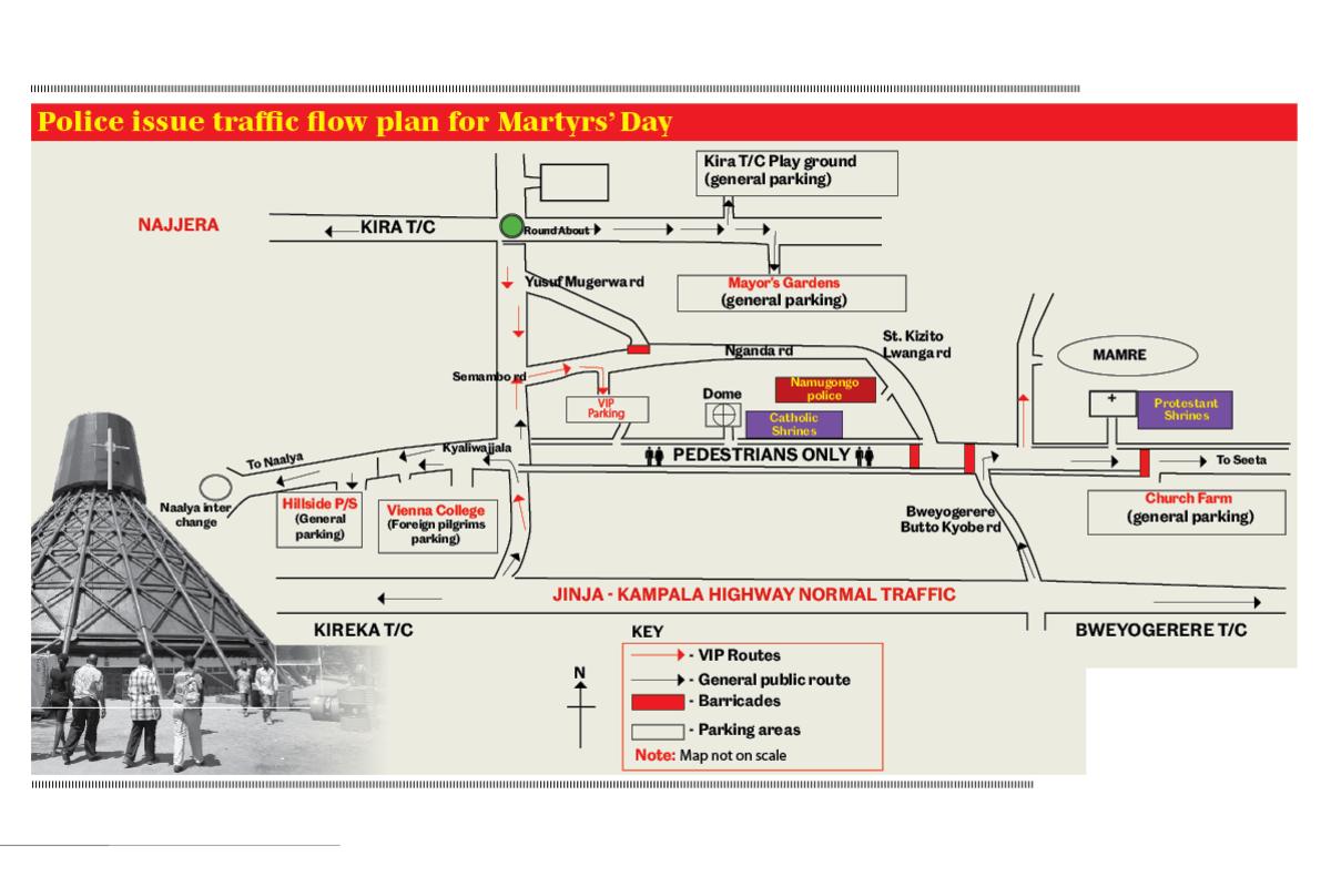 “The busy Kyaliwajjala trading centre leading to the Basilica, also known as the Catholic Martyrs Shrine, will be strictly for pedestrians, Very Important Persons (VIPs) and emergency vehicles,” Mr Nsereko said.