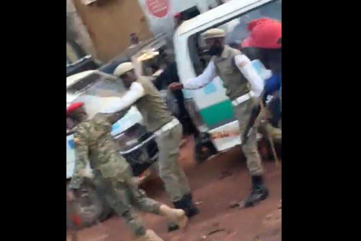 Africa-Press – Uganda. A video recording showing a military police officer dragging a traffic officer by his collar in a scuffle over traffic congestion near Mukwano Mall, Kampala has left social media users in Uganda outraged.