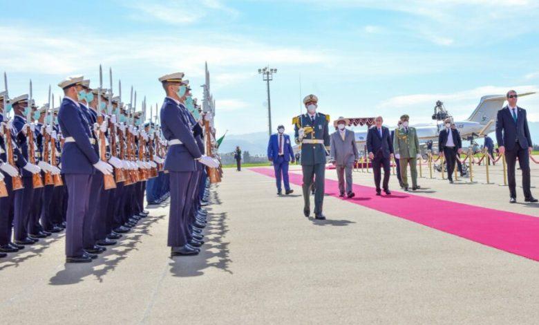 Among the high-level government official receiving the president were the President of Algerian Parliament, Salah Goudjil, the President of first room in Parliament, Boughali Ibrahim, the Algerian Prime minister, Aymen Ben Abderrahman and the Army Chief of Staff, Said Chengriha.