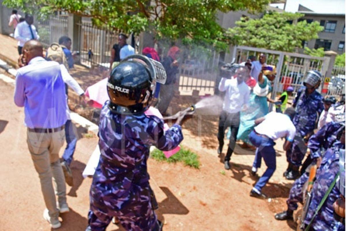 On April 12, Corporal Ogwal Yeeko pepper-sprayed Mr Isano Francis, and Mr Thomas Kitimbo, as police dispersed medical intern doctors, who were holding a demonstration in Kampala.