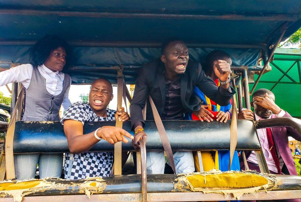 In his conversation with the chief of security, Ahikire said he estimated 15 students were arrested. A student identified as Kakamiza allegedly jumped off the police van.