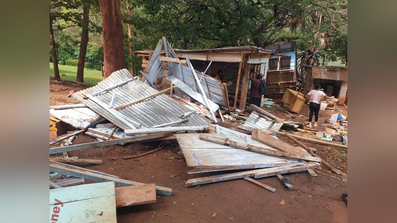 The demolition exercise started as early as 8:00am on Wednesday morning when the city enforcement team stormed area destroying all the wooden structures at the source of the Nile.