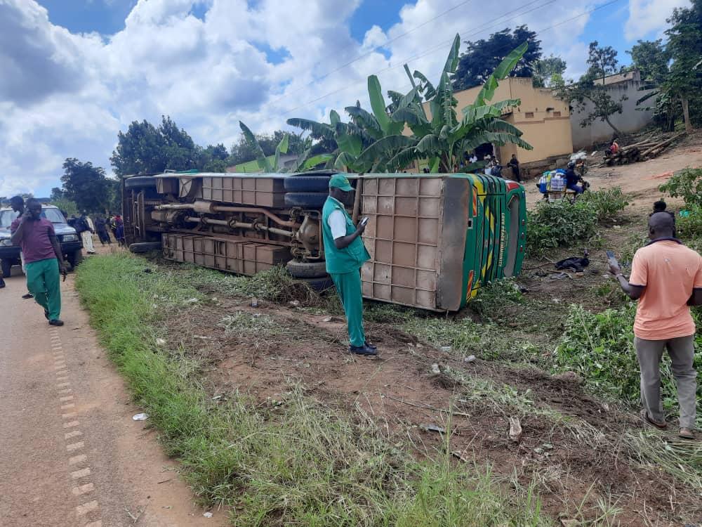 “Preliminary reports indicate that the motorcycle was ahead of the bus and they were all moving in the same direction. Suddenly, the motorcycle rider turned right without indicating and when the bus driver tried to avoid knocking him, he lost control of the bus before it overturned,” she said.