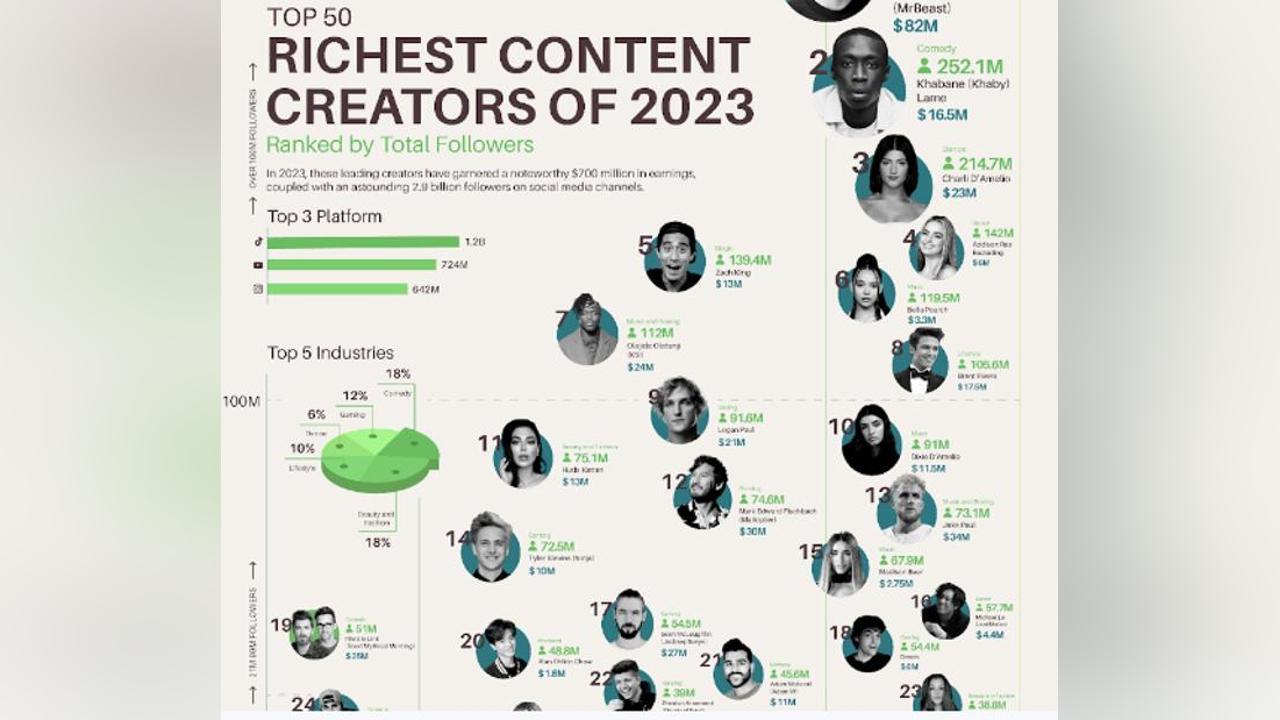 Top 50 Creators: Earning US$700M Across TikTok, YouTube, and Instagram