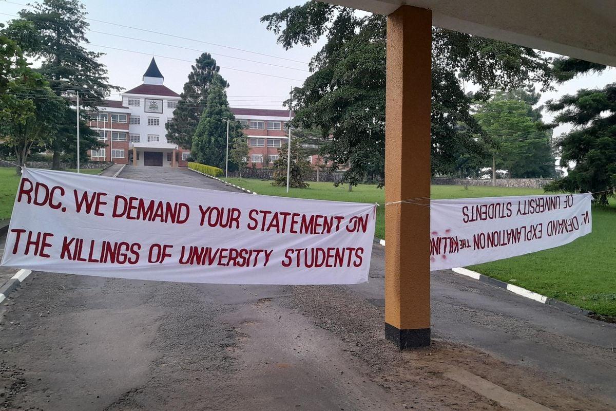 Africa-Press – Uganda. The Bushenyi district headquarters in the wee hours of Wednesday morning were locked by a group of yet to be identified university students demanding an explanation from the office of the Resident District Commissioner regarding the mysterious death of their fellow students.
