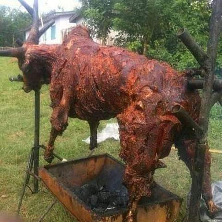 You would imagine people distributing chunks of beef to celebrate this momentous occasion but these jubilants have gone a step further to distribute live cattle to grab and sample.
