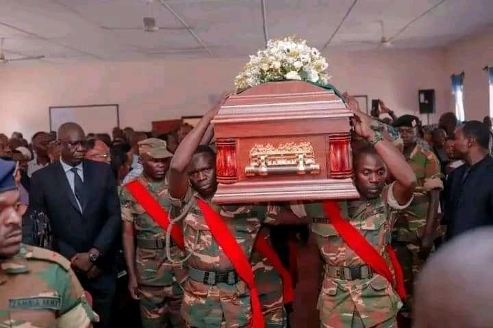 Africa-Press – Zambia. Today, Zambia bid farewell to one of its most dedicated public servants, former Cabinet Minister George Mpombo, who passed away at the age of 70. The funeral ceremony, held at Chiwala Cemetery in Masaiti District on the Copperbelt, was attended by several high-ranking officials, including Defence Minister Hon Ambrose Lufuma, representing President Hakainde Hichilema, and former Vice President Dr Nevers Mumba.