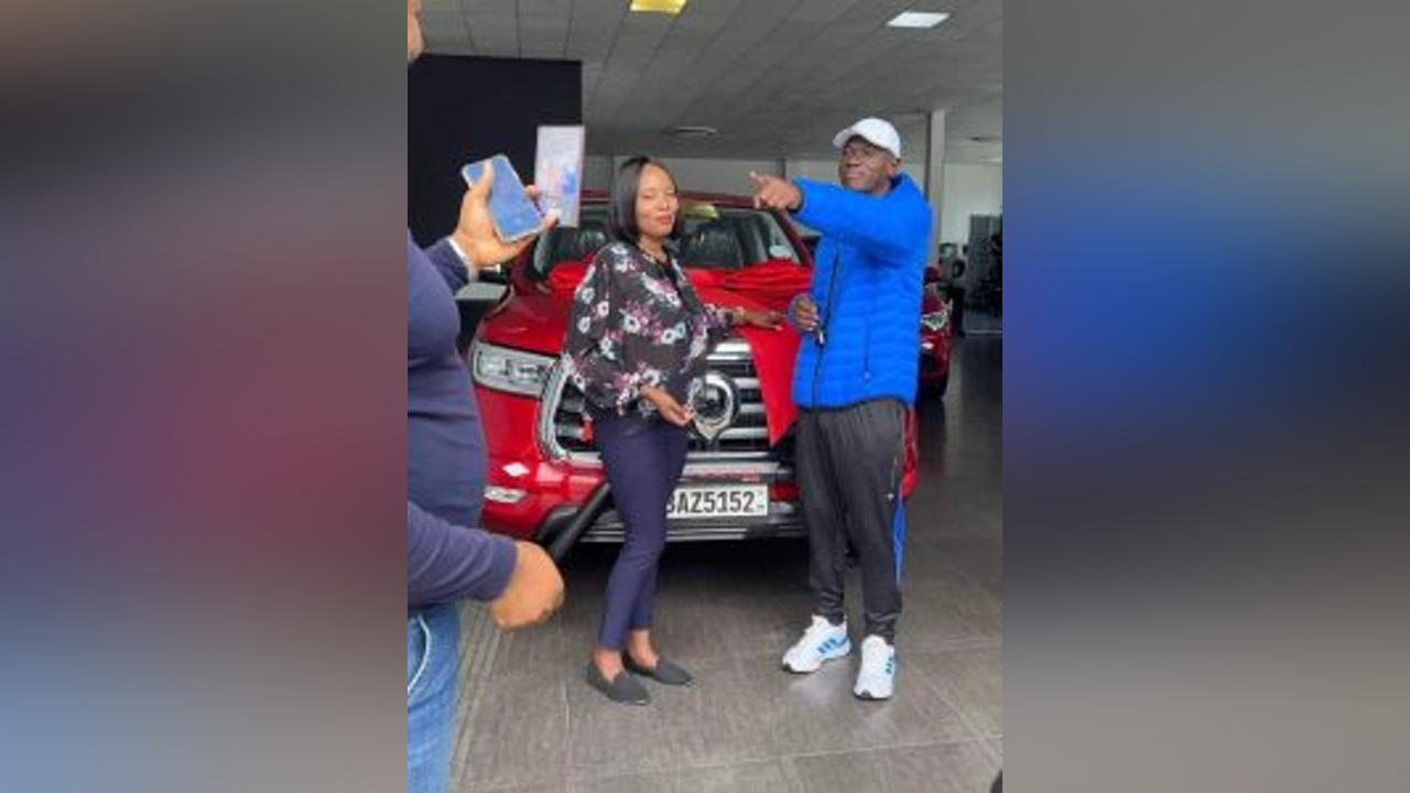 Mrs. Kawana could not hold her tears of joy back as her husband gifted her the vehicle earlier in the day, she thanked God for blessing her with such a loving and caring husband and father to their children.