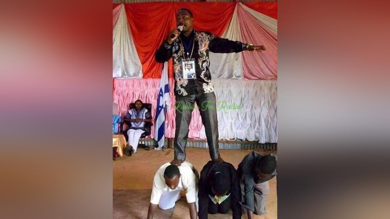 Africa-Press – Zambia. Prophet Anointed One Who Refuses To Step On The Ground While Preaching, On The New Year Eve Went Further To Order His Church Pastor To Take Him To The Toilet On His Back.