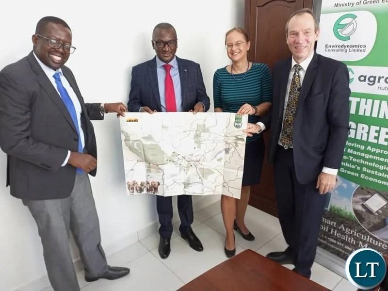 Africa-Press – Zambia. The Minister of Green Economy and Environment, Hon. Eng. Collins Nzovu, MP, has held talks with the German Ambassador to Zambia, Ms. Anne Wagner-Mitchell, and the Kavango Zambezi (KAZA) Transfrontier Conservation Area Secretariat.