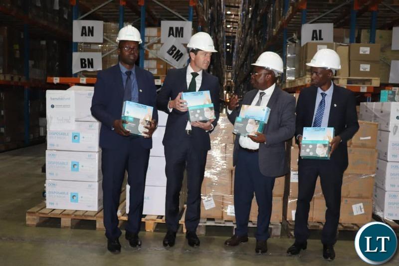 The Ministry of Health received the PPEs on behalf of the government at the handover ceremony held at the Zambia Medicines and Medical Supplies – ZAMMSA central warehouse in Lusaka, the health commodities include face masks and examination gloves which are vital medical supplies in health facilities.