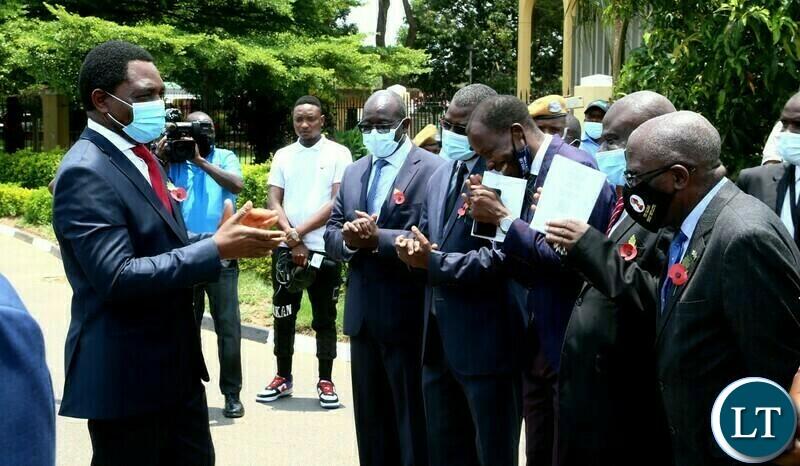 Africa-Press – Zambia. President Hakainde Hichilema interacts Permanent Secretaries after layiing wreaths during the remembrance day of the first World War at the Cenotaph in Lusaka
