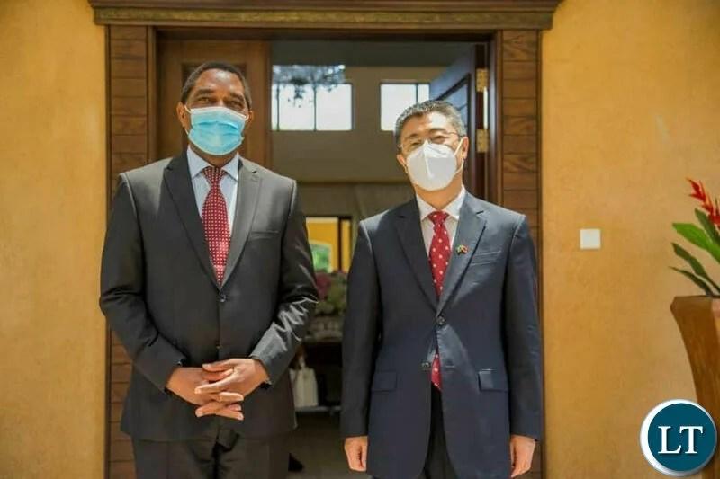 Africa-Press – Zambia. President Hakainde Hichilema on Friday held talks with Chinese Ambassador to Zambia Mr Li Jie at the Community House. The talks mainly centered on trade and investment opportunities and Chinese government’s support to Zambia in the fight against Covid-19.