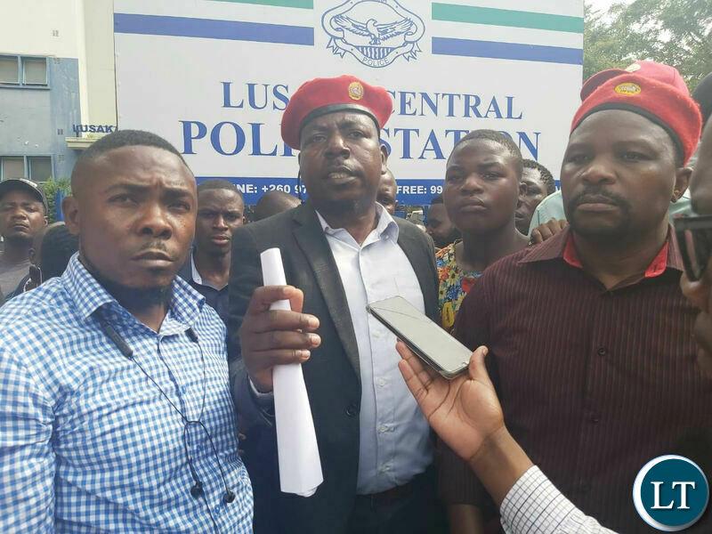 Africa-Press – Zambia. Scores of UPND youths from Lusaka Province Tuesday afternoon marched to Lusaka Central Police Station to demand for the immediate arrest of PF Chairperson for Media and Publicity, Raphael Nakacinda for allegedly defaming the President.