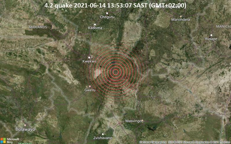 Africa-Press – Zimbabwe. Agencies – A SHALLOW magnitude 4.2 earthquake was reported around noon near Gweru, Midlands Province, Zimbabwe.